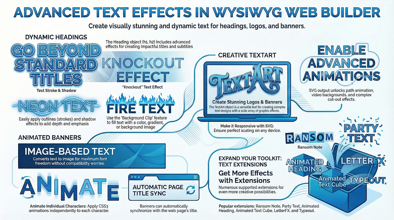 For even more text effects, check out these text related extensions for WYSIWYG Web Builder.
