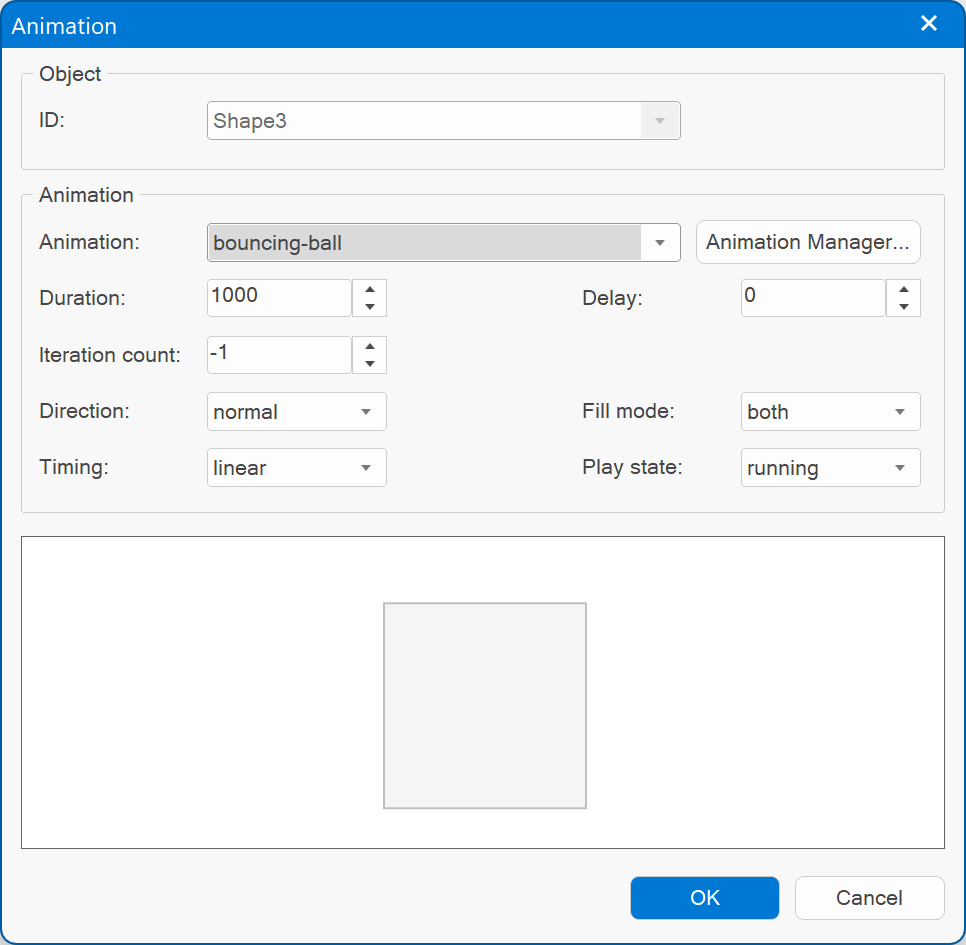 Specifies the animation (as created in the Animation Manager) to use for the object. The animation will start automatically on page load.