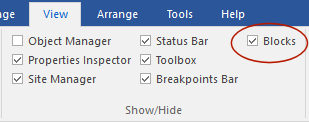 To show or hide the Blocks Manager go to Menu -> View -> Blocks.