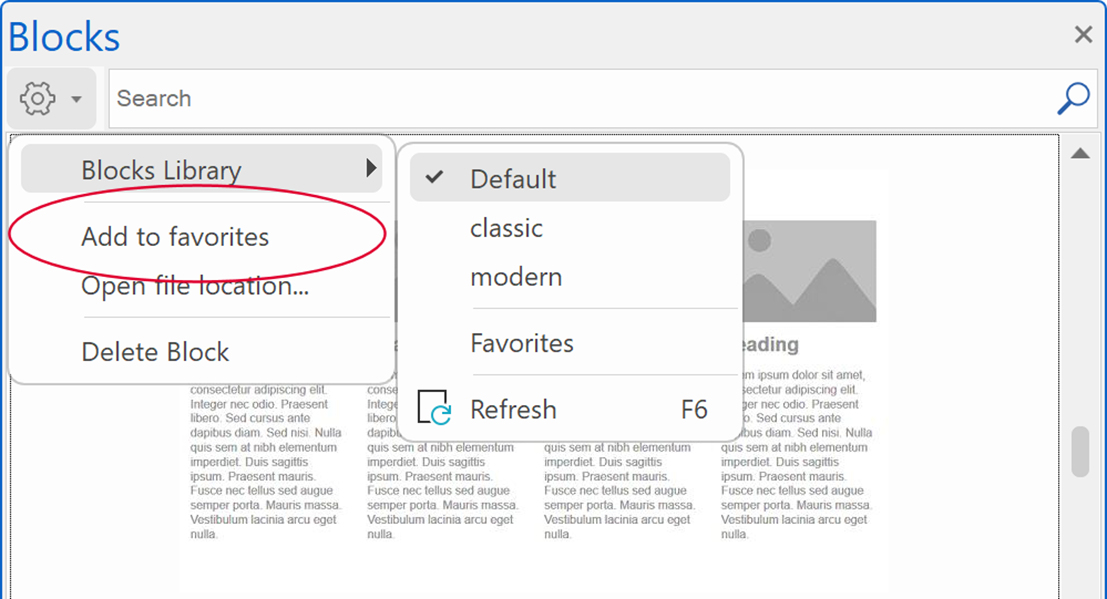 Favorites is a dedicated library to store your favorite blocks.