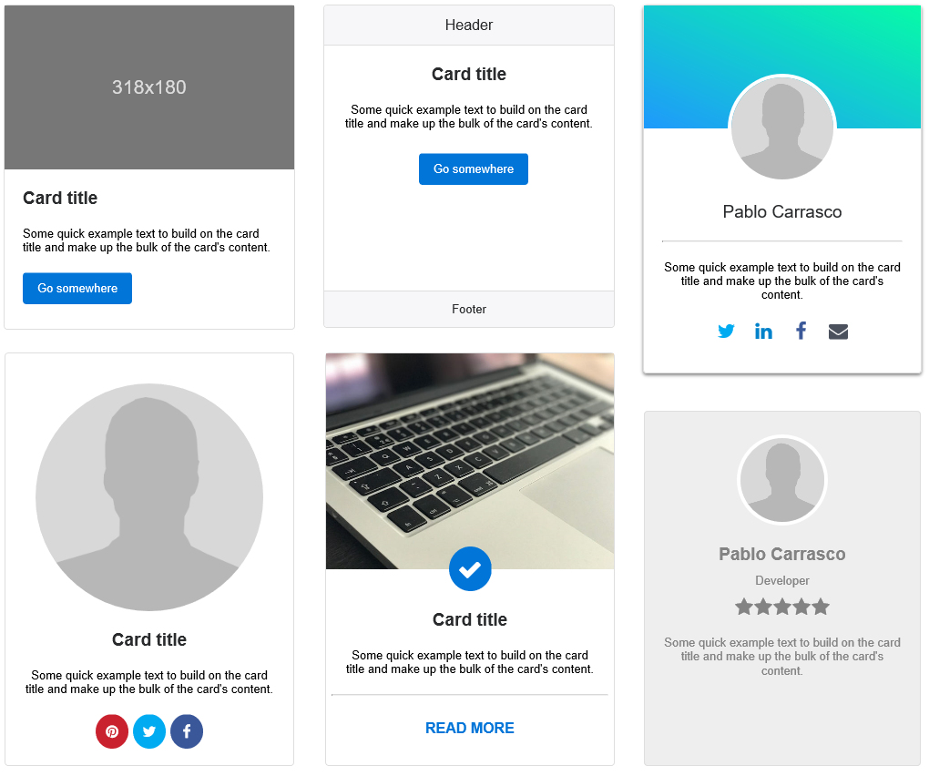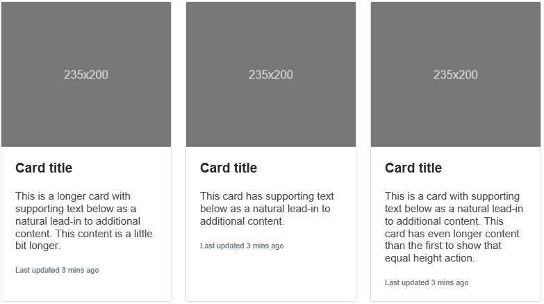When used in combination with a flexbox container, multiple cards with different content can have the same height, which normally would be difficult to achieve.