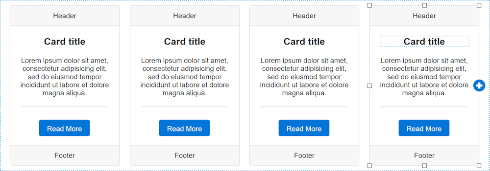 A Card Repeater operates similarly to a Card Container, with a key distinction: all cards within it share the same layout and style. This means that any modification made to one card will automatically propagate to all other cards within the same container.