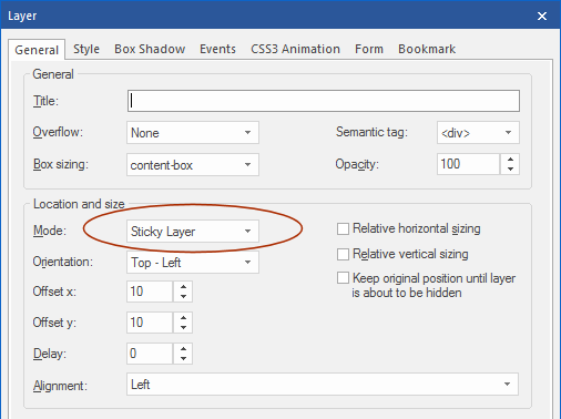 To make the menu visible all the time we add it to a sticky layer. Note that it should not be inside the Carousel otherwise it will scroll out of view!