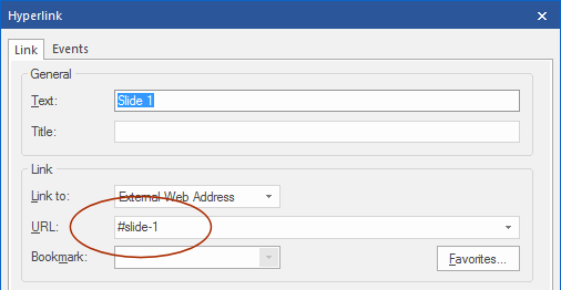 We can link to the slide with bookmarks, where #slide-1 is the first slide, #slide-2 the second slide etc.