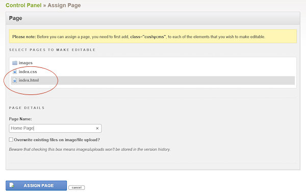 Assign the page to CushyCMS