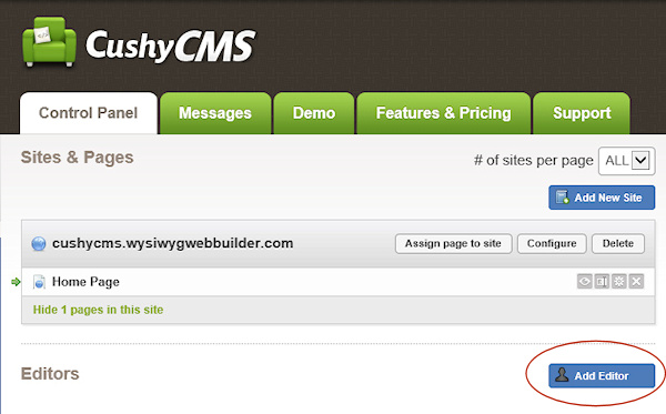 CushyCMS supports designer and editor accounts. The designer account allows you to setup the site details, like Site URL, FTP account and assign pages. The editor account is for clients (or yourself) to make changes to the website via using an easy to use interface.