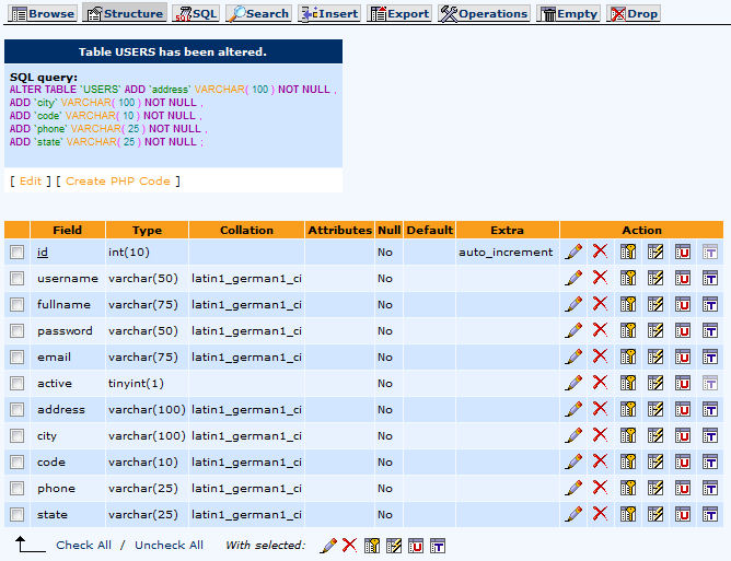 So first let's login to phpMyAdmin and create those new fields. The following fields will be added: