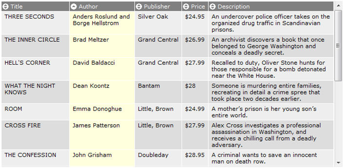 • Supports sorting and paging using jQuery/AJAX (without page refreshes).