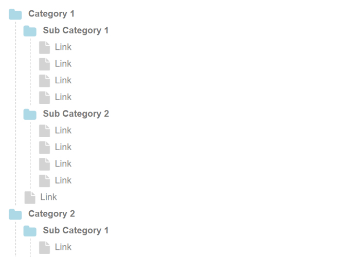 This extension implements a responsive menu that displays a list of links in a tree-like format inspired by the look of the Windows file tree. Levels can be expanded/collapsed by the user and the customizable icons. The font-size, padding, spacing, icon size and line-height are responsive, which means that they can have a different value in breakpoints.