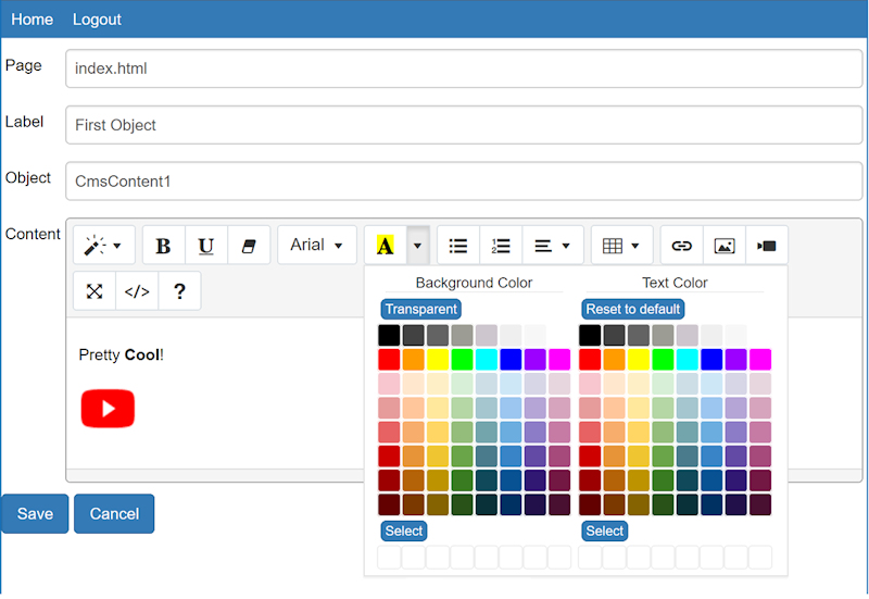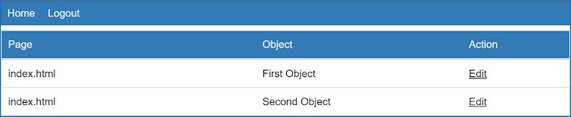 Create a new page to the project. Add the "Editable Content Admin" object to the page. Give the page a meaningful name like 'content_admin'. Although the admin tool uses PHP, the page itself does not need to have the PHP extension becuase the editor will be dispayed inside an inline frame. But it is important that the server supports PHP otherwise this tool will not work!