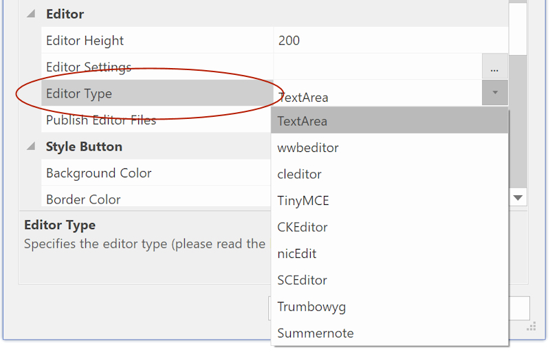 Note that the editors are not included in the standard installation of WYSIWYG Web Builder. You will have to install the editors manually! See also "Step 6" of the CMS tutorial.