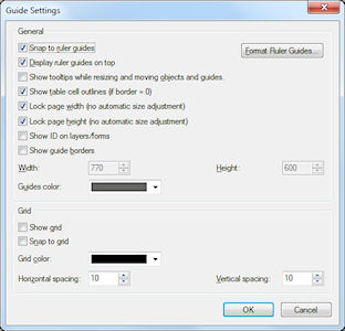 Guide borders can be useful to make sure all elements on the page stay between specified dimensions. For example if you design your web site for 800x600, then set the Guide borders to the same values so it's easy to keep your content centered in the page layout.