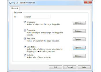 With the jQuery UI Toolkit extension you can add powerful jQuery UI features to your website with just a few mouse clicks! This extension is nothing more than a wrapper around the standard features of jQuery UI. But instead of having to write the code yourself, this extension does it for you based on the selected options.