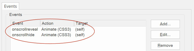 In the background, 'entrance animations' uses onscrollreveal events. So, if you select one of the entrance animations then this will automatically add new items in the 'Events' properties of the object. It's not recommended to update these values manually unless you know what you are doing.