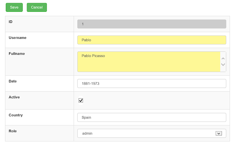 • input types: editbox, textarea, combobox (with options) and checkbox