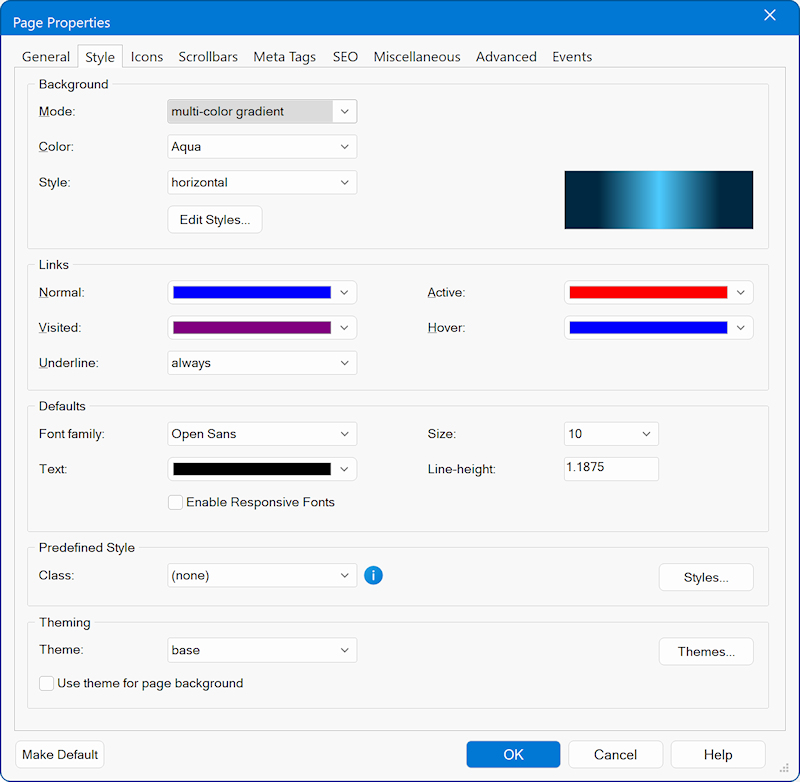 Customize default link appearance: Link / Visited / Active / Hover Colors