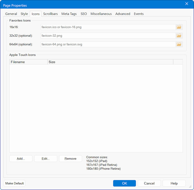 WYSIWYG Web Builder allows you to configure multiple icon sizes for compatibility with different devices