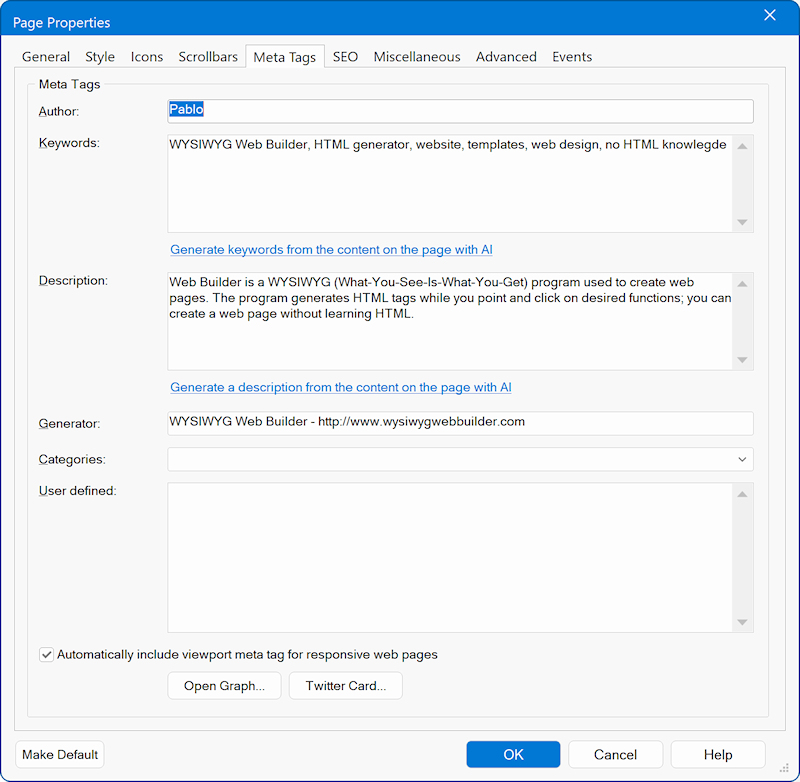 Identifies the application used to create the page (e.g., WYSIWYG Web Builder).
