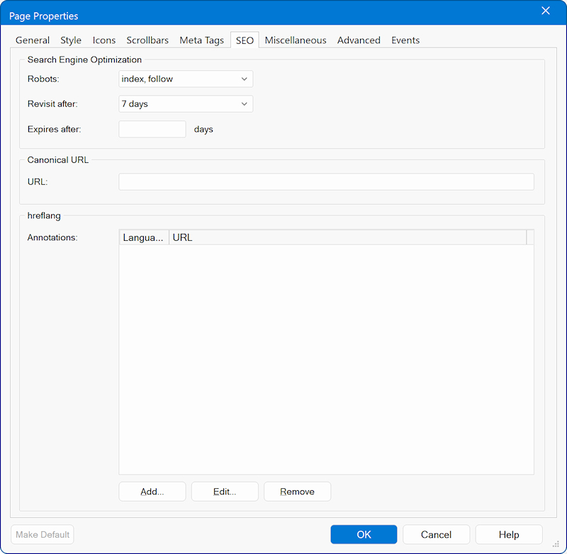 This section provides tools and tags to help improve your website's visibility and indexing by search engines like Google.