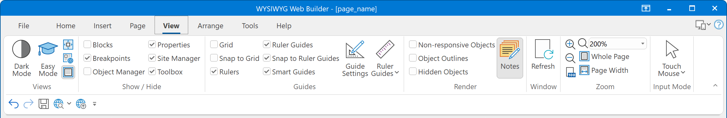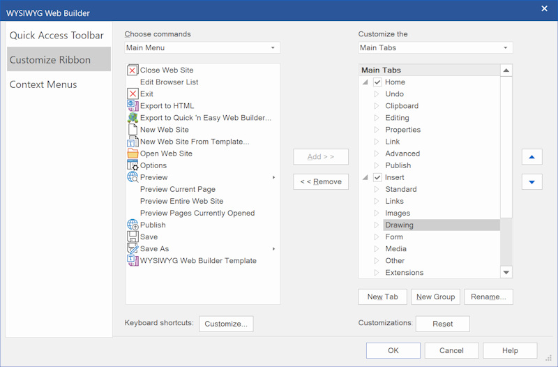WYSIWYG Web Builder supports an "Office" style Ribbon Interface. This interface simplifies the use of WYSIWYG Web Builder and introduces many new ways to quickly change page and object properties. With drop down galleries, quick access to frequently used options and much more functionality, only a click away...