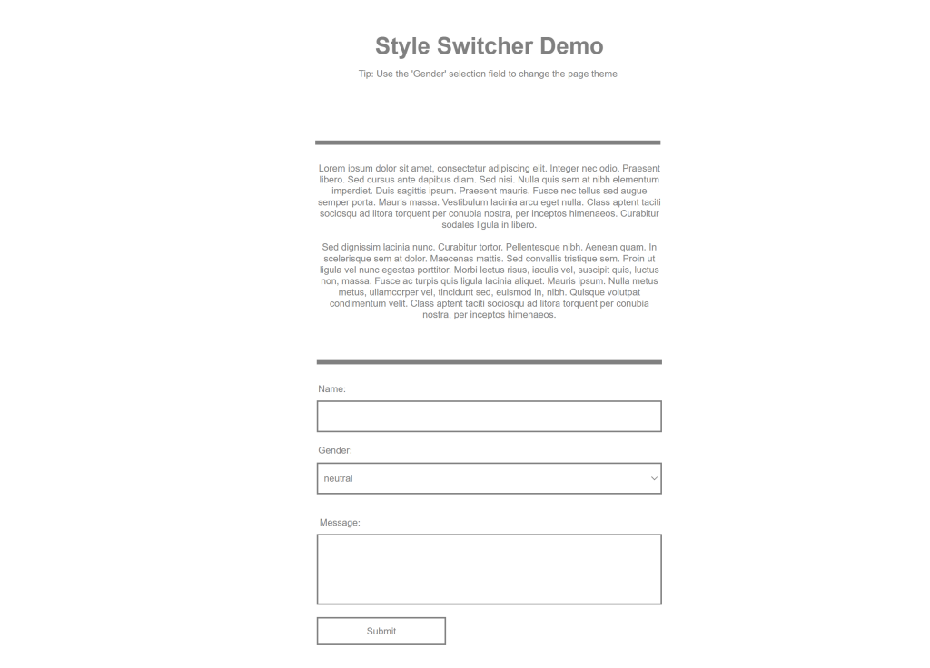 To allow the visitor to switch between styles, this demo uses a 'select' object. Normally, this object is used for forms only, but in this case Conditions are used to implement a style switcher control!