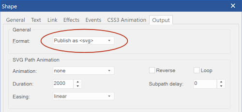 To enable SVG path animation, the output format of the Shape must be set to SVG.