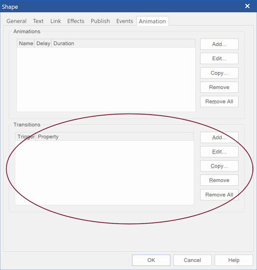 Click the Add button to add a transition to the object. Now you can set the properties of the transtion.