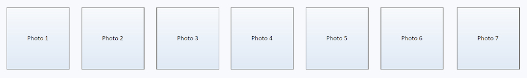 We will used a layer as a content holder, so first insert a layer and add one or more objects to it. During design time the layer will be fully expanded, so all objects will be visible. We later change the width of the layer to hide the content we do not want to be displayed initially. For this tutorial we've used shapes to simulate a row of photos, but basically it can be anything you want.