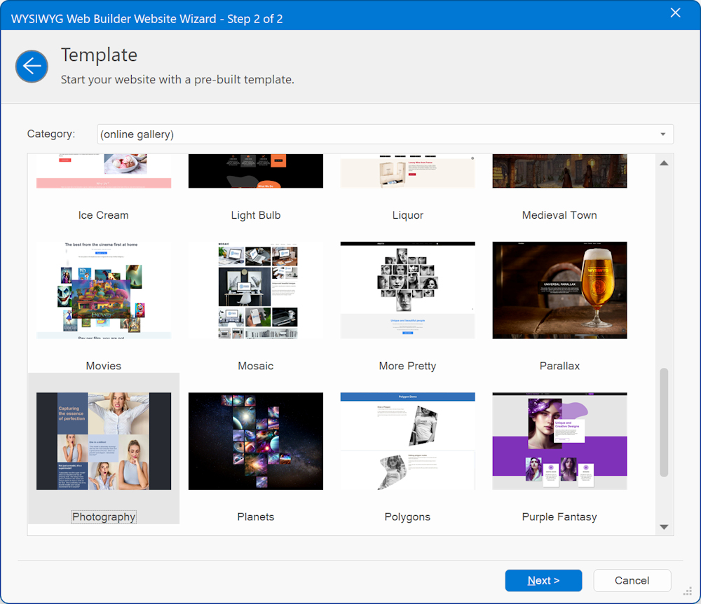 There are moments when seeking fresh inspiration for a new website design can be quite challenging. When you're faced with such moments, look no further than the WYSIWYG Web Builder's website wizard for a helpful boost!